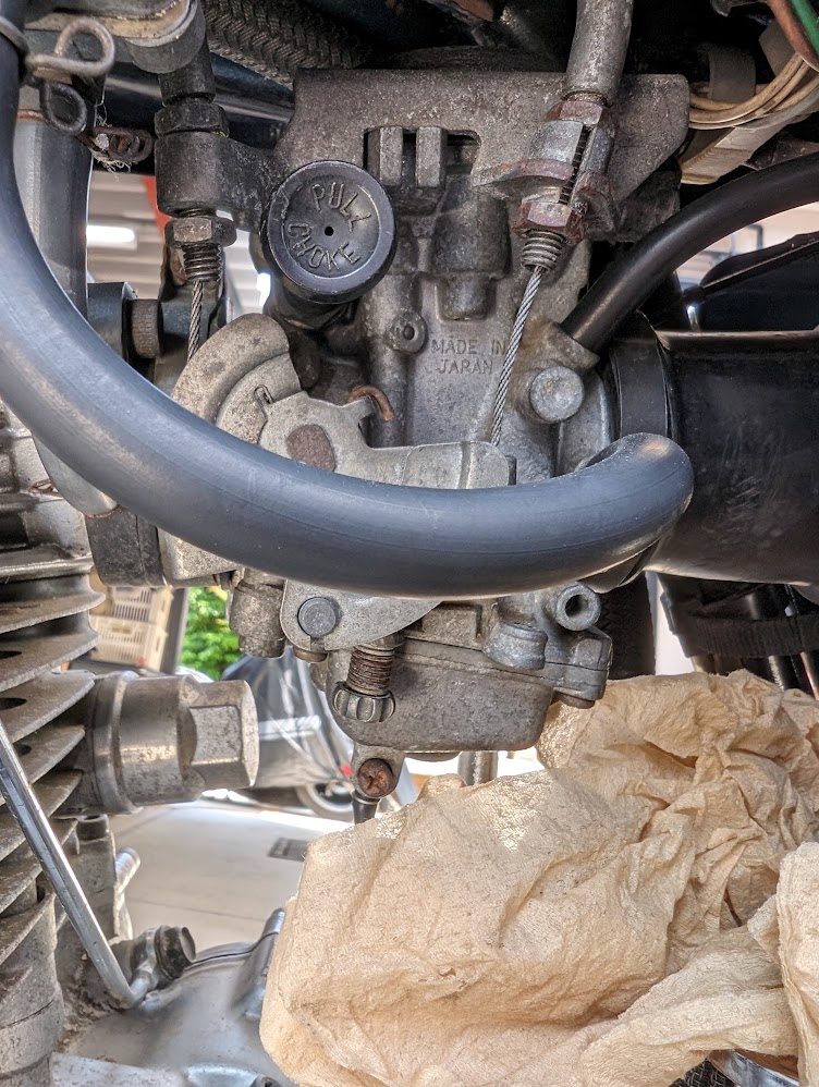 オートバイのキャブレターには厳密にいうとチョークは付いていません。チョークというのは空気の通り道を塞ぐことでエンジンからのバキューム(負圧)が高くなってガソリンを多く吸い出す機構です。