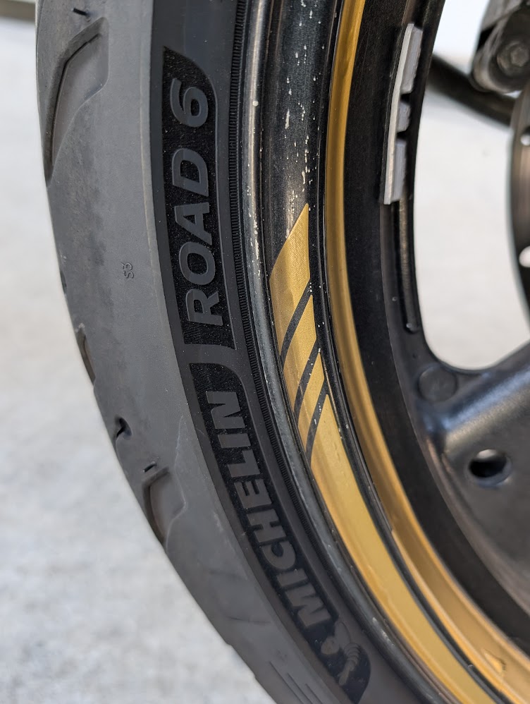 | リアホイール | フロントタイヤ140/70R17 | 2013年製、サイドにヒビ大、エア漏れ | 交換 | IRC製150/60R17 ⇒現在はMICHELIN ロード6 |