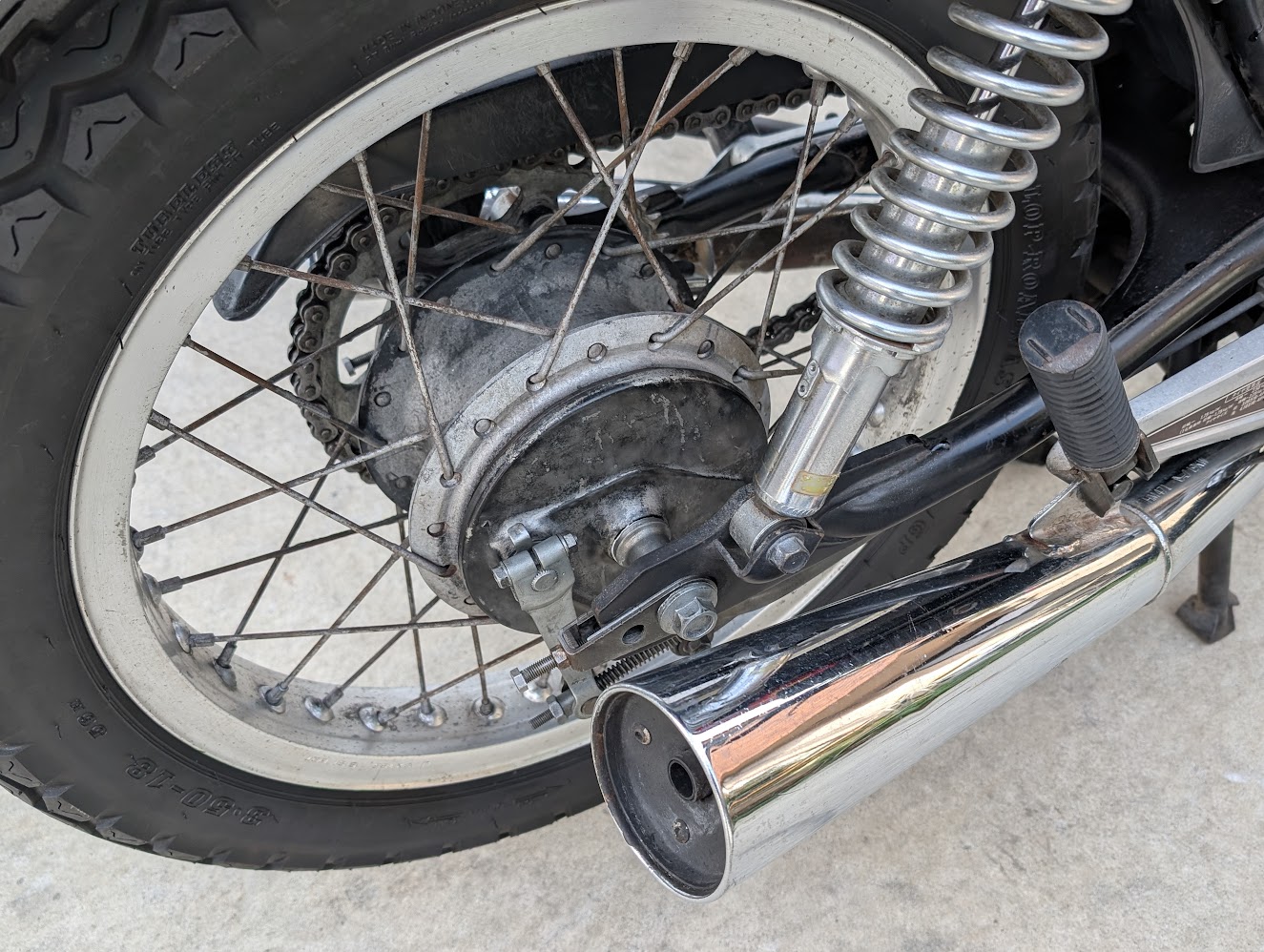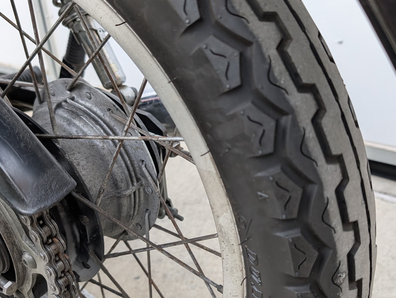 | リアホイール | リヤタイヤ | 溝残5mmあり 硬化が始まっている | 点検 | 保安基準は満たすため継続利用 |